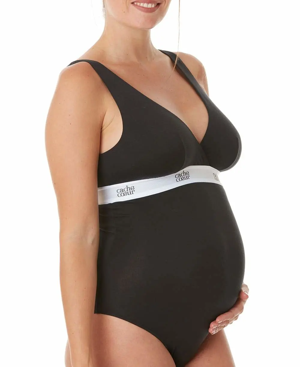 Le body de maternité d'allaitement Life NOIR allie confort absolu et élégance grâce à sa fibre de Lyocell ultra douce et son ouverture d'allaitement pratique.