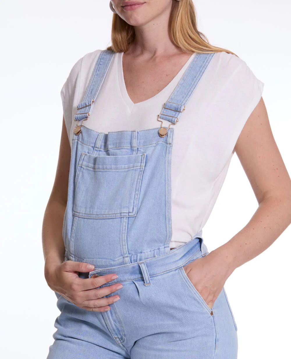 Le haut de salopette en jean Charlie Light Blue allie éco-responsabilité et tendance workwear grâce à son coton 99% recyclé et sa grande poche avant.