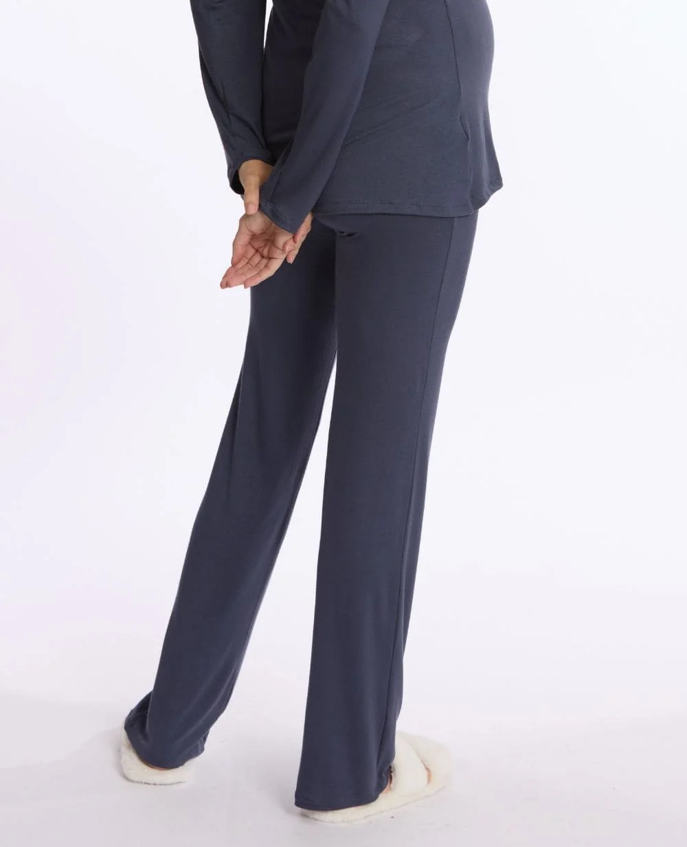 Le pantalon de maternité Louna Bleu nuit allie douceur et fluidité grâce à sa viscose de bambou et sa matière française.