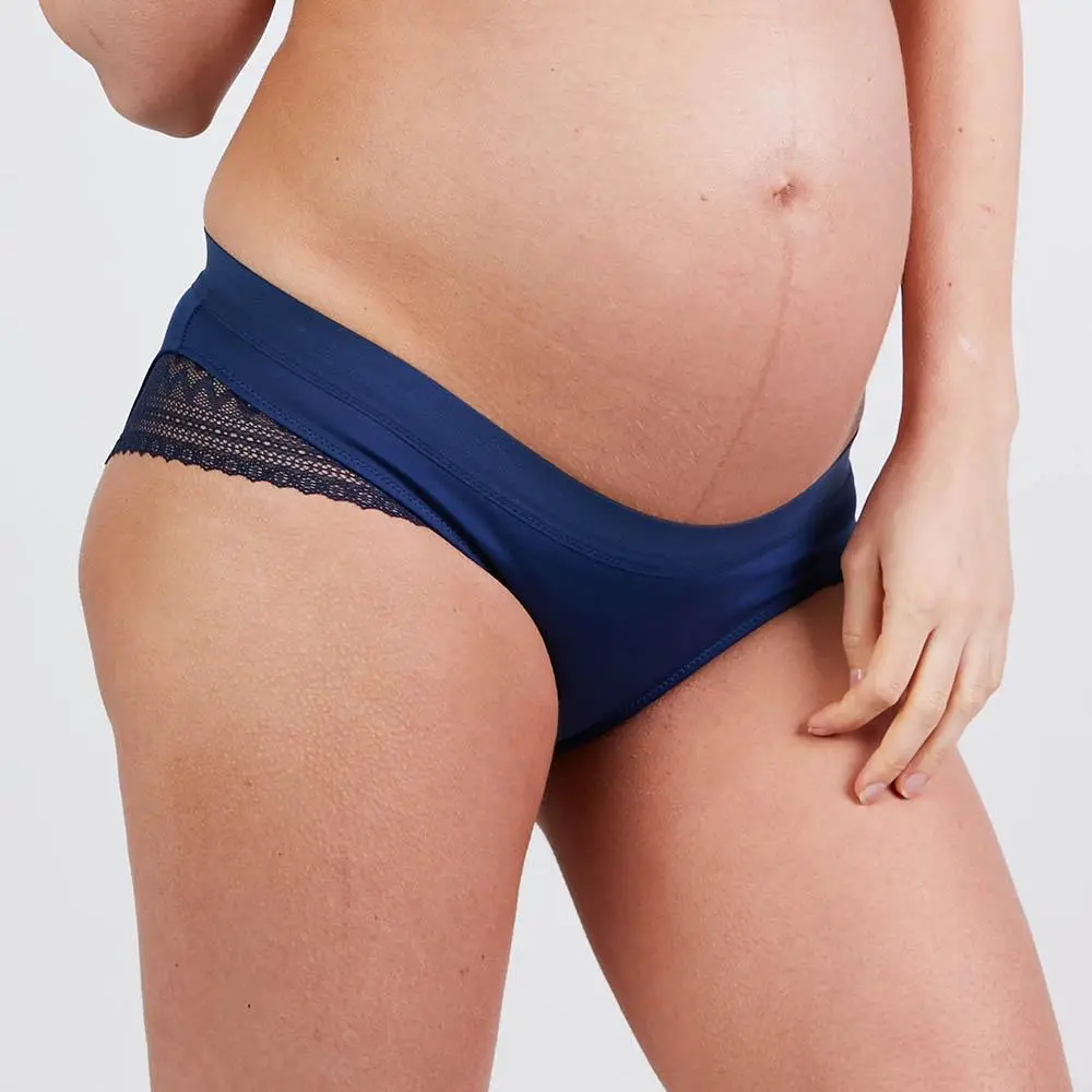 Le shorty de grossesse Serena Marine allie confort absolu et élégance grâce à sa dentelle italienne légère et sa matière double-face innovante.