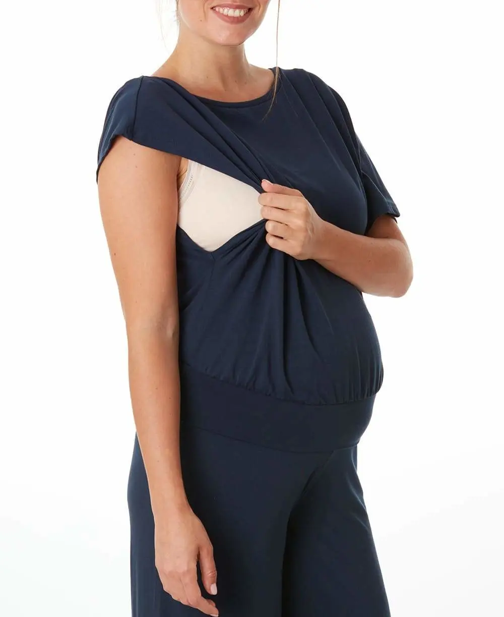 Le top de grossesse et d'allaitement Origin Indigo allie confort absolu et élégance grâce à sa fibre écologique Lyocell et son design féminin.